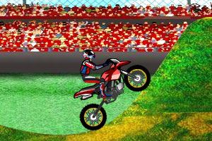 方向键↑↓控制摩托车的前进和后退,方向键←→控制摩托车的前后重心。数字键1--6动作,提示:得到规定的分数后可以进入下一关。