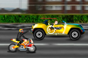 驾驶着你的摩托车,做个疯狂的杀手吧~@@@方向键控制摩托车的行驶,鼠标控制射击的方向,鼠标左键射击。