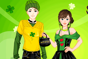 圣帕特里克节为3月17日,以纪念爱尔兰守护神圣帕特里克。这一节日5世纪末期起源于爱尔兰,美国从1737年3月17日开始庆祝。 @@@鼠标单击操作,单击按钮给情侣换装!