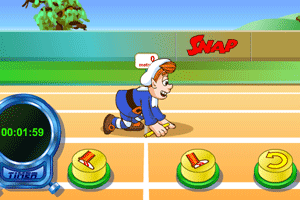 一场激烈的短跑接力赛马上就要开始了,你来控制主人公跑步的速度及交换接力棒吧!可不要掉棒喔……
