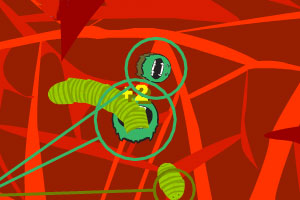 虫子从四方八面钻出来,控制主角吃掉虫子,但也要小心不要给虫子吃掉。要避开虫子的口,可以从尾部袭击,或者从中间咬断。