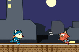 狗狗忍者正在练习飞岩走壁,谁知遇到了猫猫忍者,猫狗向来看不顺眼,只能打啦!