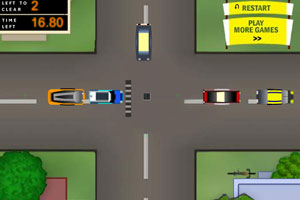 • 鼠标操作,点击红绿灯变灯,让车辆通过,不要撞到车。