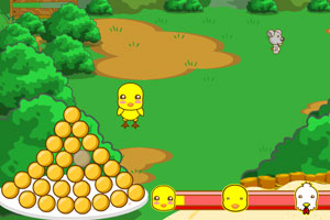 鼠标操作,抓起盘子中的食物喂小鸡长大。
