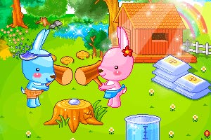 今天是森林里的盛大节日,小兔负责打年糕给大家吃,来帮帮它们吧!@@@鼠标点击操作,只要趁小兔的木槌抬起来时点年糕加入水就可以,看看你能打多少出来。