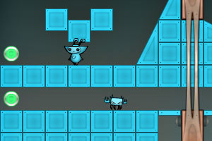 操作方法:方向键←→控制方向,↑跳跃。游戏中小螃蟹会跟着机器人的方向走,所以在走的时候要考虑两者是否都可以通过。