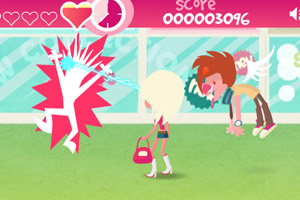 鼠标移动操作美女移动,鼠标单击某个附近的男生开始对他放电。
