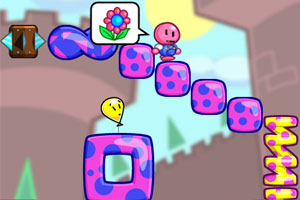 今天是大头男孩的生日,朋友们为他准备好了好多礼物,可惜的是被一阵大风全给吹飞了,没办法只有男孩去捡回属于自己的礼物了,你来帮助他吧,要帮他吃掉所有的花使他的脑袋变大并飞起来,飞起来后找到气球打开通往下一关的门,共有三十多关,有点难度的哦,加