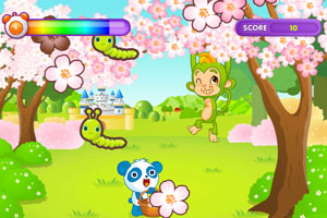 正是樱花盛放时,落英缤纷,花瓣都掉地上真是可惜了,搜集起来回家酿樱花酒,嘿嘿,小猴上树晃下花瓣,小熊猫在下面捡,小心虫子和烂花瓣哦~ @@@鼠标拖动樱花瓣到花篮内收集。