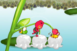 鼠标左键跳跃,向前移动的距离大小就是青蛙向前跳的距离。捡到路上的物品可以加分,游戏结束后点击左下方的按钮返回。