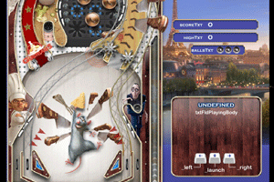 游戏介绍:最新上映的迪士尼影片《美食总动员》的弹珠台小游戏,制作精良,很好玩的!@@@游戏只能点“全屏”按钮来玩,否则不能正常载入。点右下角“skip”跳过动画,再点右下角“play”开始游戏。按住键盘下键蓄力,松开键盘下键弹球,左右键控制