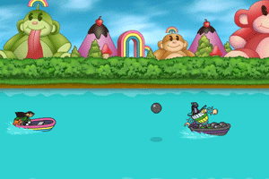 一款惊险刺激的小游戏,你与敌人在海上大战!@@@鼠标控制方向,鼠标左键抛球射坏人。