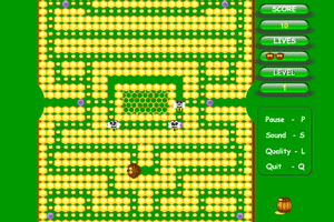 类似吃豆豆游戏,可爱的小熊偷吃了蜂蜜,可别让蜜蜂碰到哦,下场可想而知了!@@@方向键控制移动。