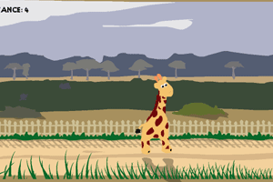 有盗猎者想用麻药枪射击小鹿,你必须帮助它!@@@遇到障碍按上键或下键躲避!