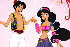 阿拉伯民间故事的阿拉丁用他的神灯实现了愿望,和最美丽的公主结婚了...在他们的婚礼上,接到了神灯仆人的祝福...@@@鼠标点击衣物给这对新人换装。