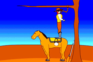 牛仔被强盗抓住准备绞死,形势很危机,怎么样才能安全逃离呢?@@@鼠标点击操作!