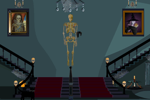 你被一只吸血鬼关在这间恐怖的房间子里,不但迎面就挂着一具骷髅,连楼梯的每个扶手上都有……再仔细观察一下不知还会有什么可怕的东西等着你……还要继续么?@@@鼠标点击操作!