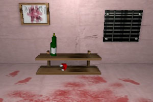 墙上好大的一块血迹,一直蔓延到地下。地上好多血色的脚印,看来犯罪分子没有穿鞋啊,那么怎么没有死者的痕迹呢,墙里面有个洞,不会是学习连城诀把尸体……