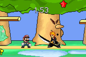 评价相当高的明星大乱斗推出了第二部,这次不只增加了死神克劳夫...新角色,音效画面也变的比较精致,游戏一开始要先选择角色,最多可以4个人一起对战,用鼠标拖拽号码牌到你选择的角色上,接着选择场景,一共有