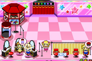 造型屋的老板就是这个卡哇伊的小女孩,别小看她,她可是出名的设计师哦,来这里做造型的都大明星呐,还不赚钱赚到手软,用最快的速度给她们打扮吧!@@@鼠标点击操作给小美女们造型和化妆。