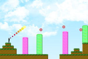 鼠标控制操作,单击鼠标射击,靶子全部打中就可以过关。