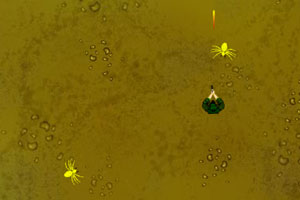 一个神秘星球上的生物都发生了变异,出现的巨型毒蜘蛛,并且还有一些变异而成的机器人,为了对这个星球展开彻底的研究,一名宇宙战士飞往此星球摧毁变异物种,拯救星球。@@@方向键控制人物的移动,鼠标单击射击。