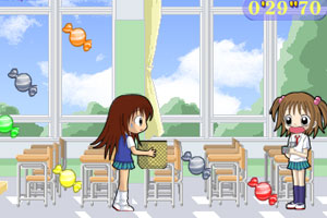 点击中间的糖果盒开始游戏,鼠标控制人物移动接糖果,不要接到灰色的糖果,接好后找到你的朋友把糖果给她吧。