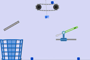 要在限时内将输送带上的垃圾,利用机械手臂来分类到对应的桶子内。