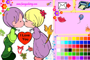 非常可爱的小情侣来为她们填上漂亮的颜色吧,制作成漂亮的卡片送给好朋友们~@@@鼠标操作上色,托动花和气球装饰,制作完成后可以发邮件或打印出来送给朋友。