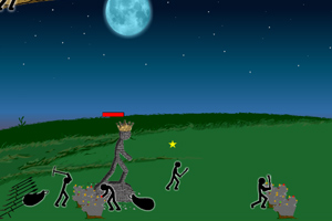 火柴人战争的v1.3版本,游戏更加精彩,发动你的智慧做一个伟大的军师吧!@@@鼠标点击选择要操纵的角色,上面状态条依序是:生产单位;中间三格选择撤退、防守、进攻;左边是金钱,右边是你的兵力;暂停、音乐。