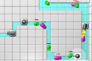有敌人入侵运输署,快点采取防御措施来阻击敌人吧。包围我们的运输署!@@@鼠标操作。将右下角的武器放入河道中才能起作用。首次打开为日文版本,在左侧有语言选择可选“english".进入游戏点击右下角的武器放入你所期望的位置来阻击敌人,敌人会按