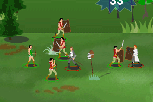 封建帝国的战争,那时的战争主是就是需要兵马,都是比较真实的一对一的战争。这里你可以先设置一个英雄,增加他的技能点数,然后到镇里招兵买马,没有钱就去打仗赚钱...@@@鼠标点击完成这次的战争。