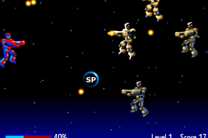 机器人进入太空展开了大战,为了能更好的消灭敌人,我们全力投入战斗吧!@@@游戏点start按纽开始,用鼠标键键移动,点左键射击。