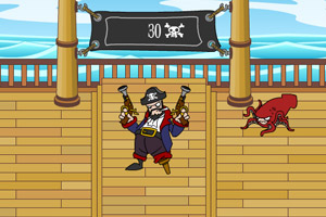 一听到“海盗”渔民们都毛骨悚然,因为海盗很坏,专门在海上抢劫~如果海盗碰上怪物会怎么样呢?不小心的话还有可能会沉船呢~呵呵……我们一起来看看吧!@@@方向键↑↓控制人物的上下移动,鼠标点击怪物射击。
