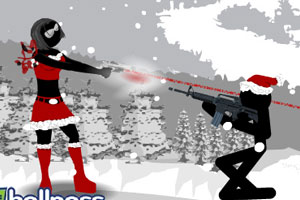 红衣女杀手身材很火爆,在雪地里和一群火柴人开始了枪战!开始画面为游戏介绍,按照要求控制方向键来完成任务。@@@方向键移动枪的射线,空格键射击,上子弹需要用鼠标拖动弹夹到枪里。要注意地上仰射的敌人!