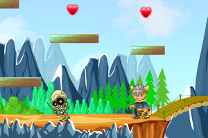 键盘操作。先点击Enter进入游戏,方向键“→、←”控制人物移动,“Z”键跳起。遇到怪物和危险时可避开,或者跳起将怪物踩扁,收集心型得分。下方Life表示生命数。