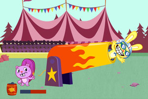 方向键←→调整大炮的发射角度,准备好后按空格键发射,在飞行的过程中还可以按两次空格键,让小兔子飞的更远。