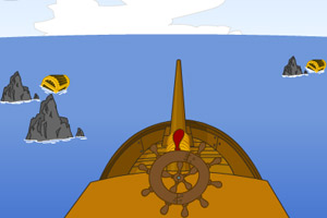 • 鼠标左键转动方向盘控制海盗船行驶。