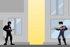 方向键←→控制移动,方向键↑控制跳跃,空格键控制射击,Z键控制暗影斗篷进行防御。机枪和暗影斗篷都有使用限制,游戏窗口上方的蓝色条和红色条是冷却时间,尽量不要让它们耗尽。游戏开始首先要输入名字,在go的上方,然后点击start,之后在右上方点