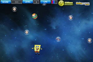 游戏中使用鼠标控制海绵宝宝头顶球。