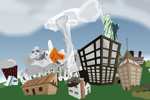 鼠标控制操作,单击右上角的相应按钮选择攻击方式,鼠标移动到建筑物上面然后单击就可以摧毁建筑物了!