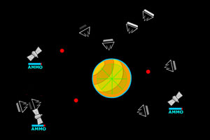 鼠标移动到合适的位置,按下ZXCV放置卫星,放置好所有的卫星之后,鼠标移动控制卫星瞄准方向,点击左键射击!