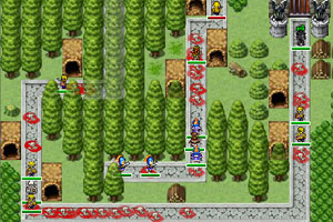 • 鼠标操作,游戏开始时先选择英雄,进入游戏后在空地上放置兵营,方向键移动英雄,等待敌人的进攻。