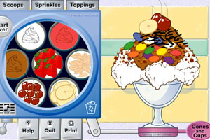 游戏中使用鼠标操作,点击分配按钮装点自己的冰淇淋。