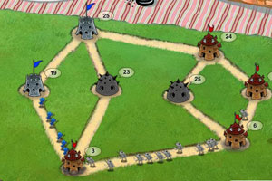 鼠标操作,点击选择巢穴,被选中的巢穴为黑色,再点击相邻的巢穴就会出兵。小游戏累积一定经验后可以升级虫子,例如速度防御力。左下角的三个小图标可以在路边建筑炮塔,但是要以消耗虫子为代价。点击左上角的箭头按钮可以加快游戏速度。