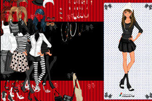 经典的黑白色,是永不过时的经典,快来为mm换装打扮吧!@@@鼠标拖动衣物给美女换装。