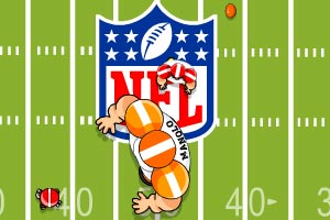 方向键↑↓←→控制移动,捡起橄榄球后要正对着你挑战的那位前辈,按下空格键将橄榄球扔向他就可以得分了,一定要注意躲避哦!