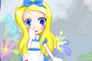 游戏使用鼠标操作,拖动衣物给爱丽丝换装。