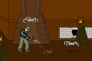 WSAD控制移动,E键使用物品,R键换子弹,空格键跳跃,1-3切换武器,鼠标左键射击。