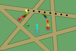 点击play进入,选择进攻的路径。进入后点击炮塔图标并选择防御武器,移动鼠标将它放在有利的防守位置来阻击敌人的进攻。